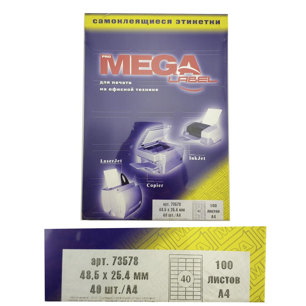Универсальные бумажные наклейки для лазерной, а также струйной печати и копирования. Размер 1 шт: 48,5 * 25,4 мм