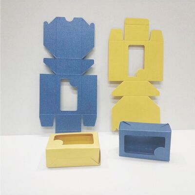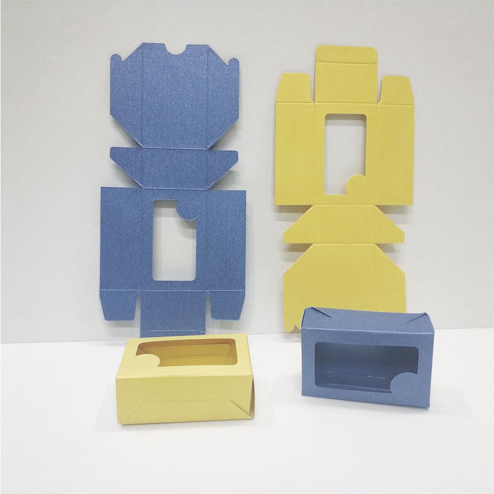 Коробочка для визиток самосборная с окошком из дизайнерской бумаги (в ассортименте).